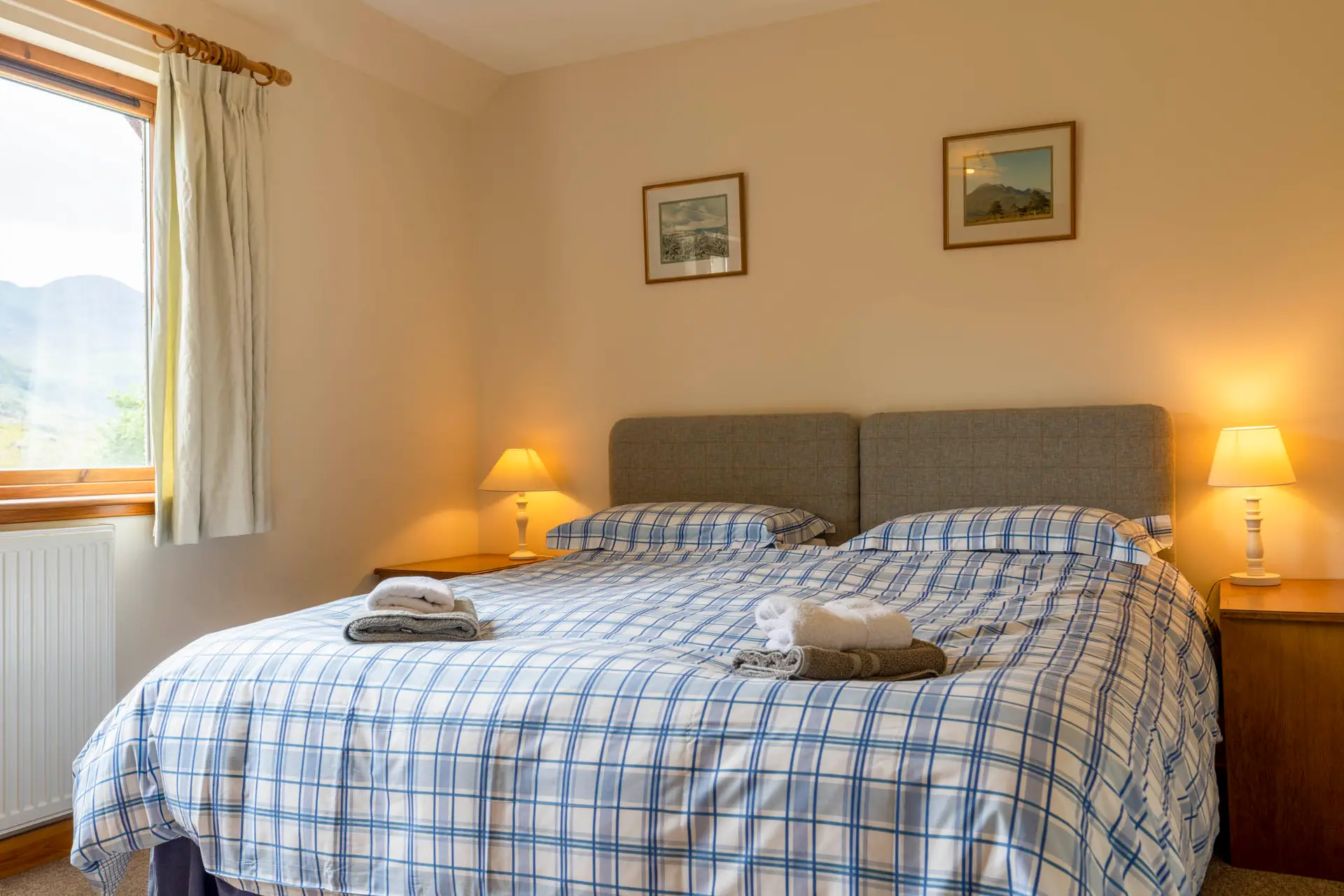 The accommodation is spread over two floors and comfortably sleeps eight people. There are four bedrooms that can be set up as king or twin rooms. The first floor consists of three king/twin rooms. The master bedroom has an en-suite, there is a family bathroom and a downstairs shower room.